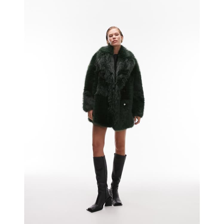 Product Name: Topshop green faux fur coat 2025
