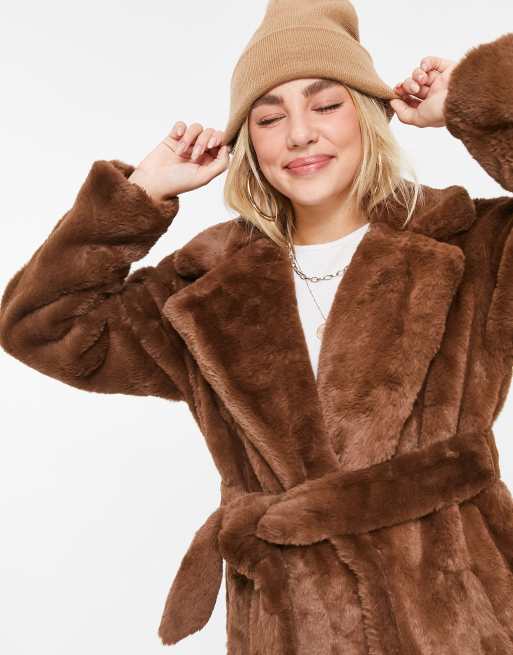 Product Name: Long tan faux fur coat 2025