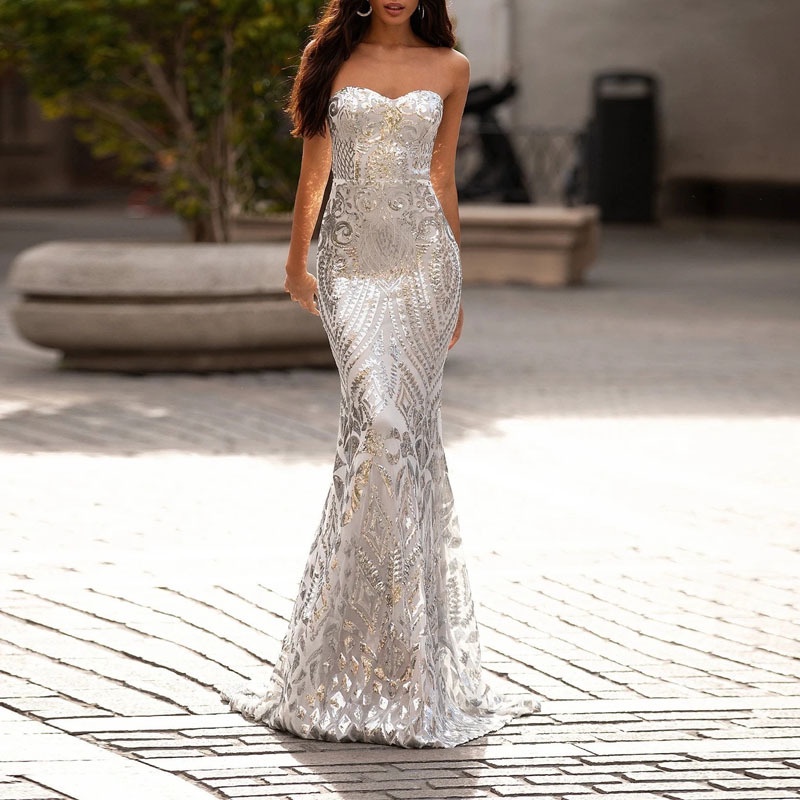 Product Name: Sexy silver sleeveless sequins fishtail evening dress 2025