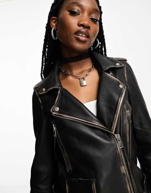 Product Name: Distressed leather biker jacket 2025