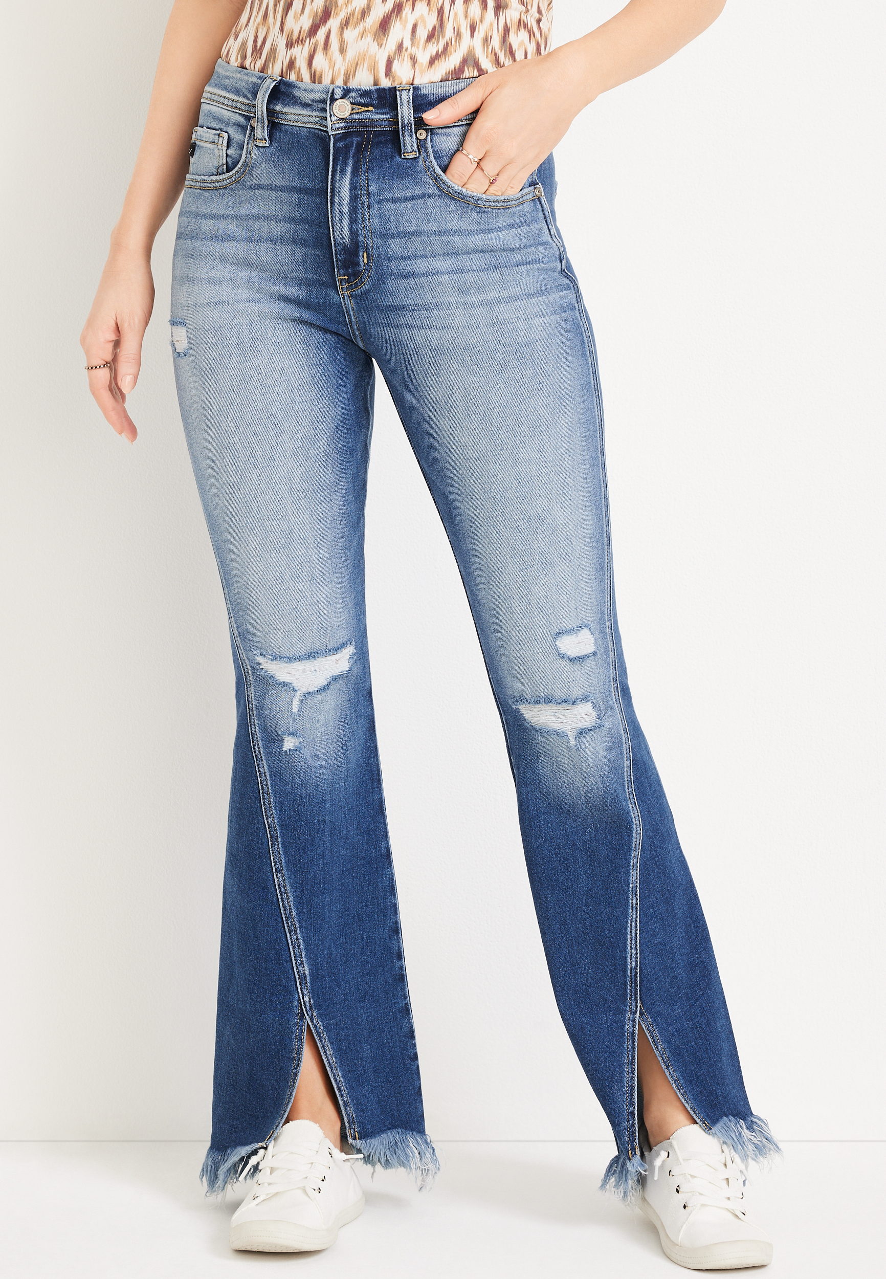 Product Name: Frayed hem flare jeans 2025