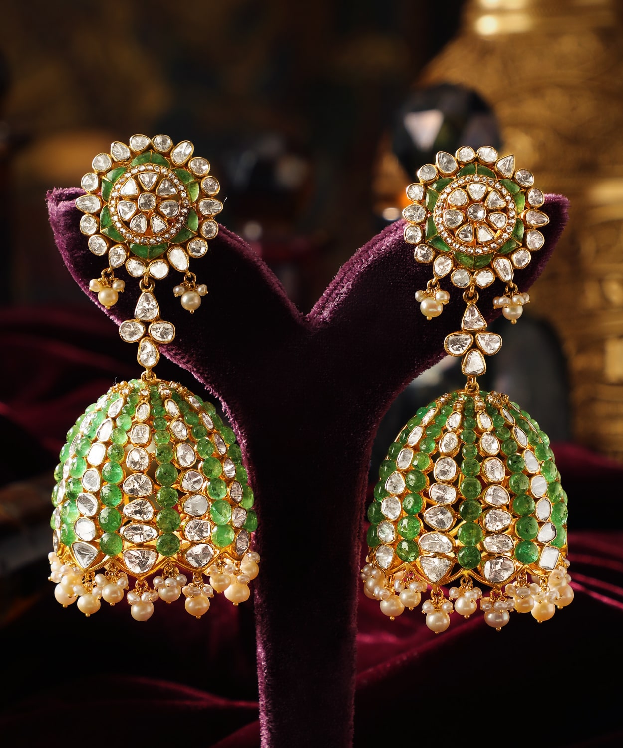 Product Name: Kashmiri jhumka earrings with emeralds & polki 2025
