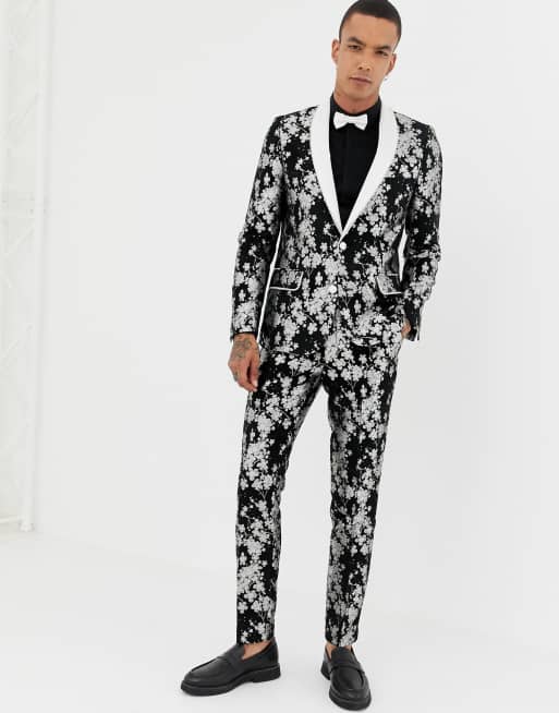 Product Name: Slim black floral jacquard tuxedo jacket 2025
